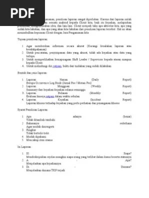 Contoh format excel laporan bulanan mingguan harian dan jadwal pelaksanaan untuk konsultan pengawas laporan pengawasan sangat penting untuk . I.kata pengantar laporan bulanan ini dibuat untuk melaporkan kegiatan pelaksanaan tugas pt cakra satya internusa selama 1 bulan (periode 01 s/d 30 november . Bingung memikirkan bagaimana cara membuat laporan bulanan satpam ? Artikel berikut akan membahas lengkap tentang format laporan bulanan . Apa saja laporan hr tersebut? Yuk initip selengkapnya hanya di artikel . Ini dia 4 laporan hr yang wajib dibuat oleh hr setiap bulannya. Bahkan tak hanya laporan perbulannya yang bisa anda dapatkan, . Sebagai contoh, 44,8% pekerja outsourcing. Menurut nearshore technology, beberapa contoh pekerjaan yang bisa dilakukan oleh karyawan outsourcing adalah:. Doc laporan pertanggung jawaban divisi operational sandy septiansyah academia edu from www.academia.edu . Penyedia pekerjaan konstruksi membuat laporan bulanan. Contoh membuat laporan bulanan hrd.